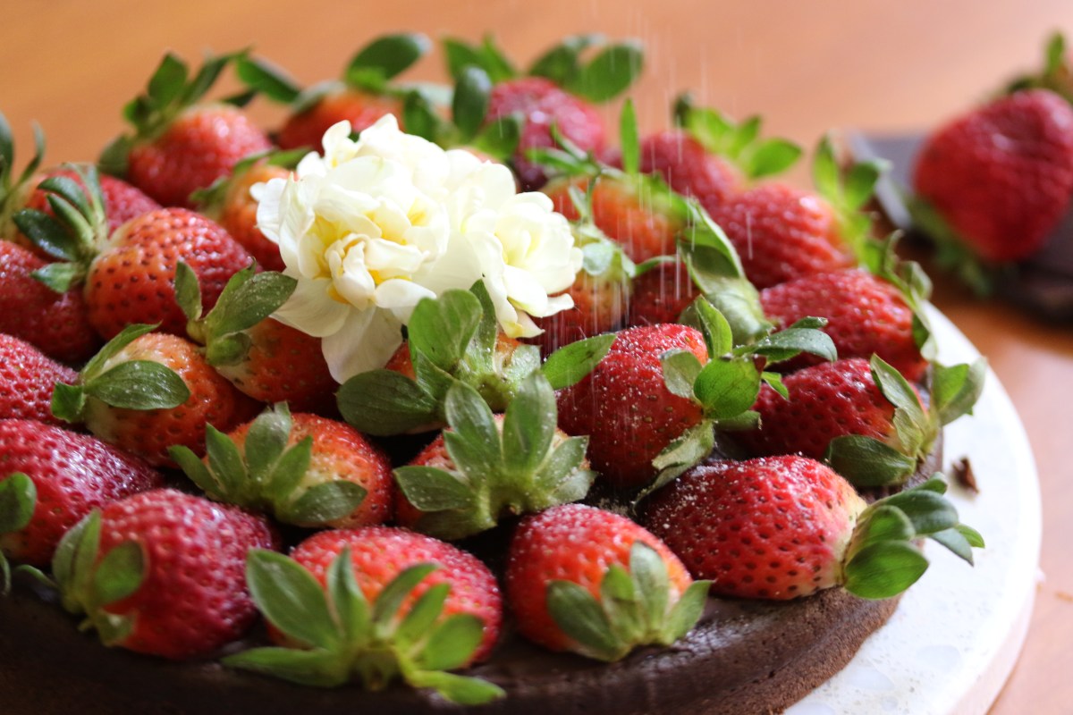 by Ting-a-lingThe classic flourless chocolate cake! One of my favourites to make because it is moist and fluffy at the same time. I love decorating my cakes with fresh strawberries and since they are in season now, I definitely made full use of it. I didn’t get a chance to take any photos of the cake slices because it was meant for a house warming...