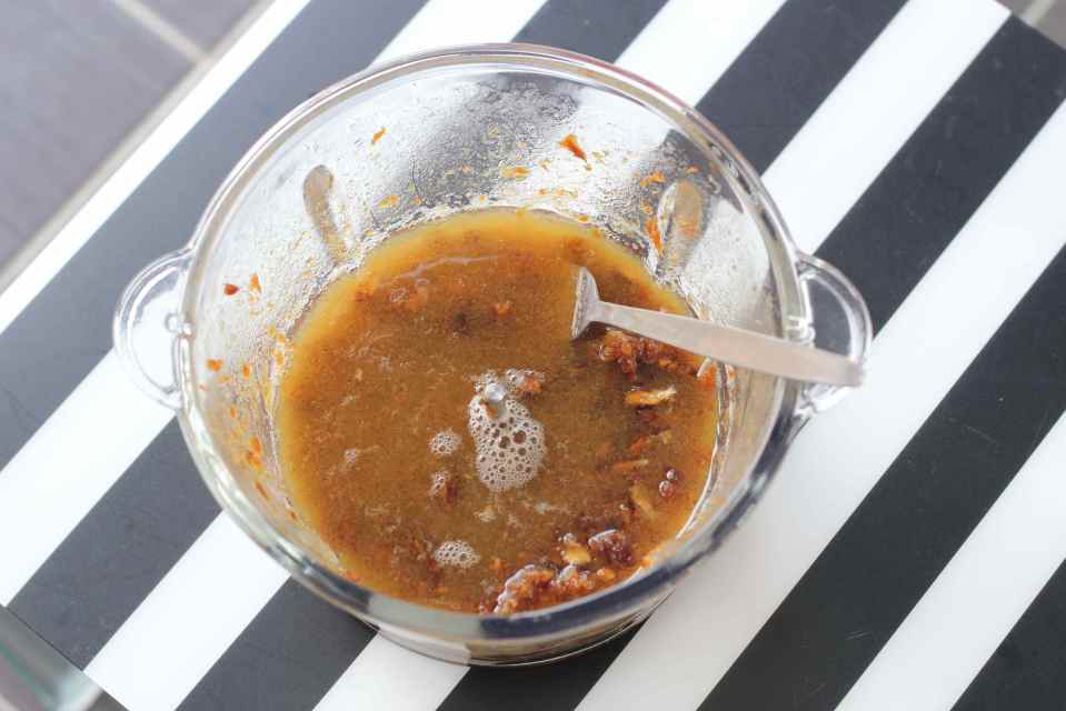 March 20, 2015 IMG_9209 Pour 175ml of boiling hot water into the dates and let it soak for 30 minutes
