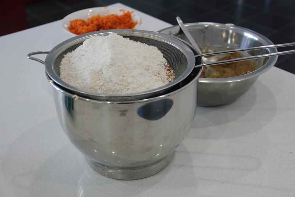 April 9, 2015 IMG_9395 Sieve the flour, bicarbonate soda, cinnamon powder and nutmeg into the mixture