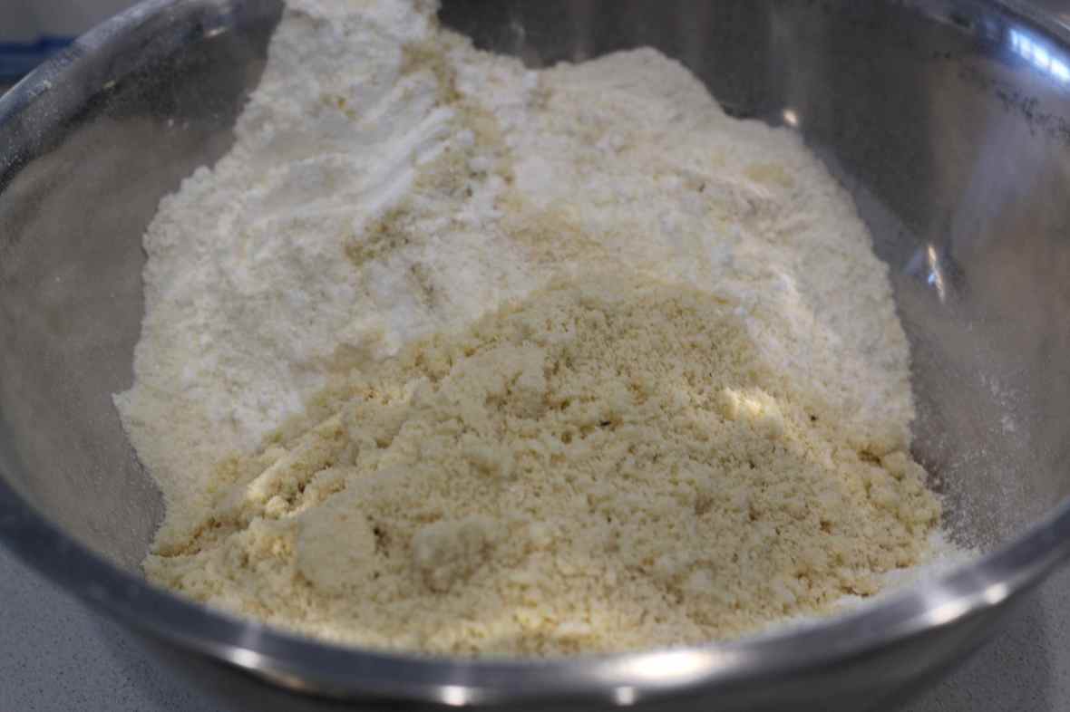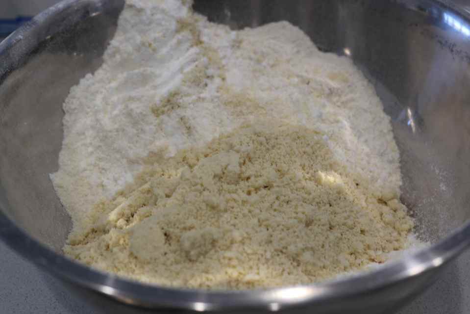 Add ground almonds, salt and vanilla essence. Mix well