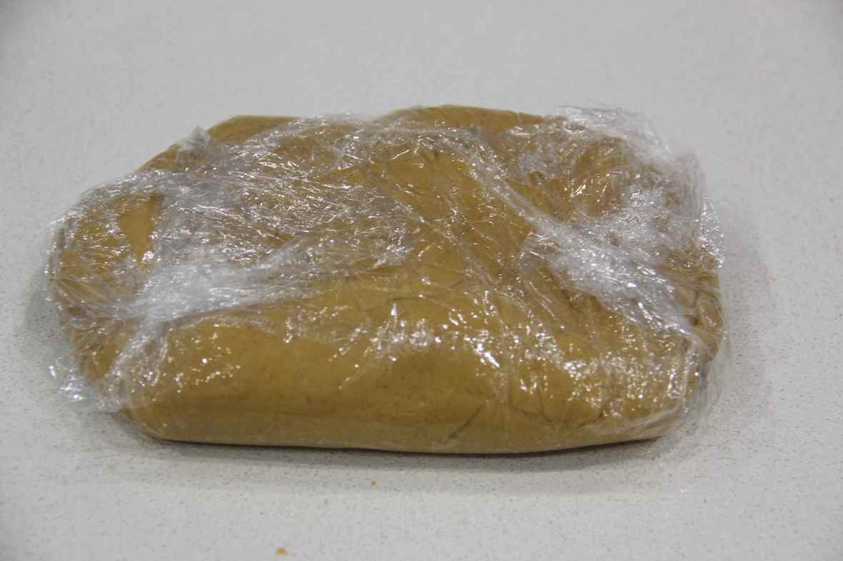 April 19, 2016 IMG_2781 Add in the desiccated coconut, mix it well until a dough forms. Place the dough in a cling wrap and let it rest overnight