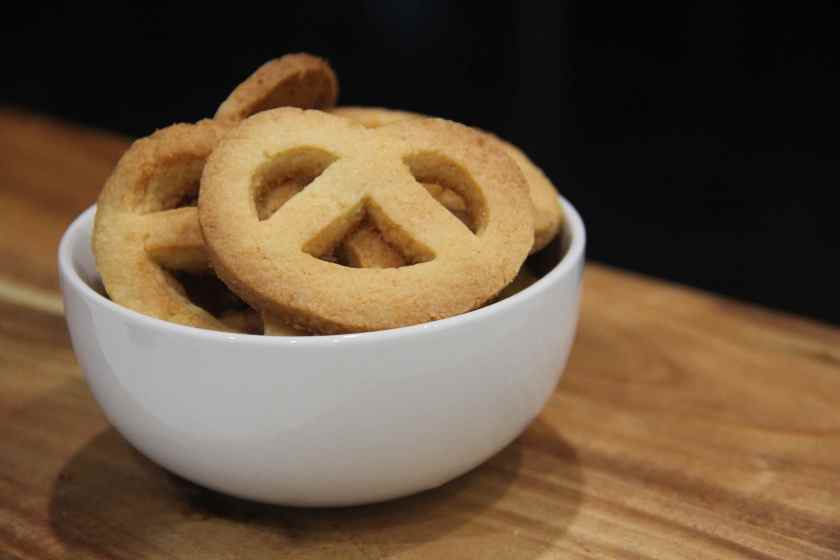 Yay! I’m finally done with my exams! To celebrate, I’ve turned to my favourite pastime – obviously baking. Since I didn’t have much time for grocery shopping during the week, I just went through my pantry and found some left over desiccated coconut… hence the cookie of the week shall be coconut pretzel cookies! It’s really easy to make doesn’t take much time too. Hope that you’ll enjoy it! Preheat the oven to 170 degrees Preparation time: 15 min Baking time: 10-15 min (or when the cookie turns golden brown) Ingredients for the cookies 220g plain flour 120g caster sugar 140g butter 2 egg yolks 1 tsp vanilla essence 150g desiccated coconut 1 tsp baking powder Nutrition per cookie (one batch makes 60) Click on the images for baking instructions