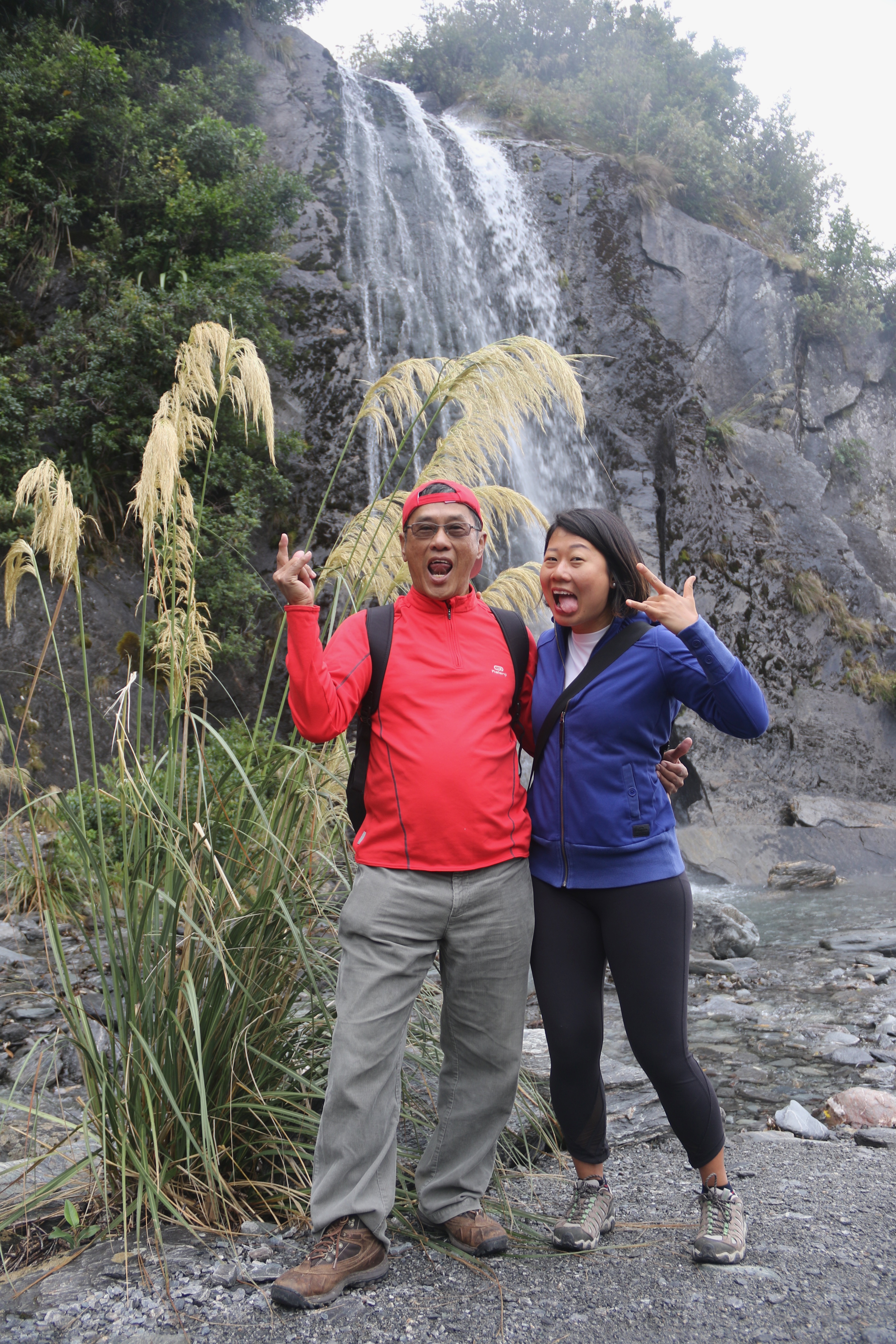 After the nice gentle walk around the lake, we were all ready for Fox Glacier. Warning: the walk to Fox Glacier is very steep and challenging. I was struggling with it and by the time I got to the Glacier, I was perspiring like crazy. If you only had time for one glacier, I would recommend Franz Josef because it’s friendlier to get there.