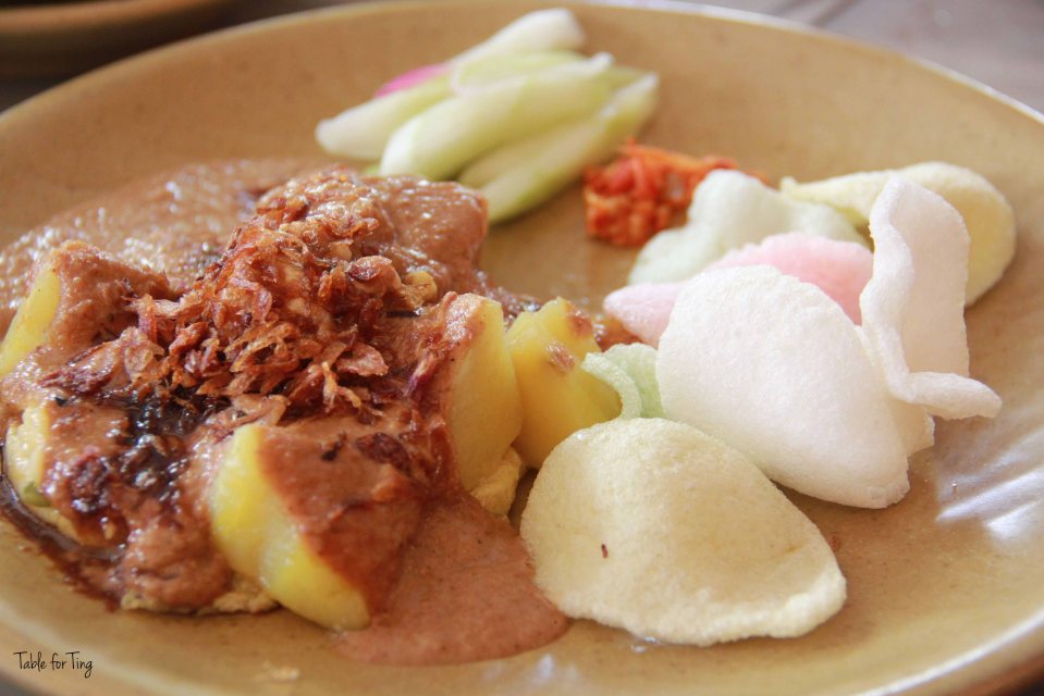 July 7, 2014 IMG_0319 copy Tahu Tek-Tek – Tofu omelette prepared with longing (rice cakes) and topped with peanut and shrimp paste