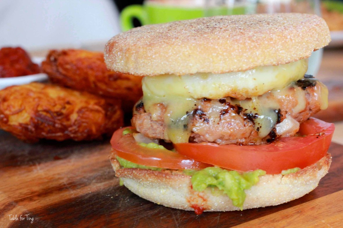 April 26, 2014 IMG_9170 copy Breakfast burger with sausage patty, smashed avocado, tomato, egg, cheddar, hash browns (AUD 16)