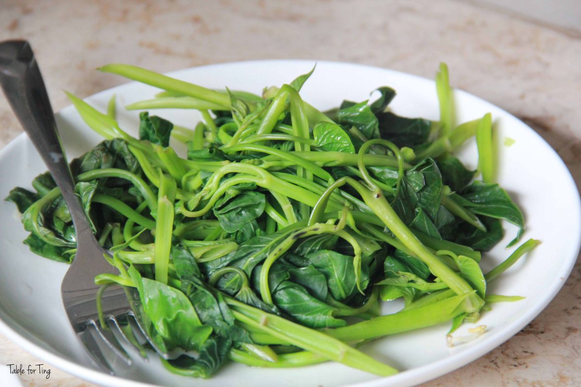 July 7, 2014 IMG_9767 copy Boiled kang kong – I got a shock when the dish came because the Kang kong in Singapore is never served this way. This is where understanding the local language helps.